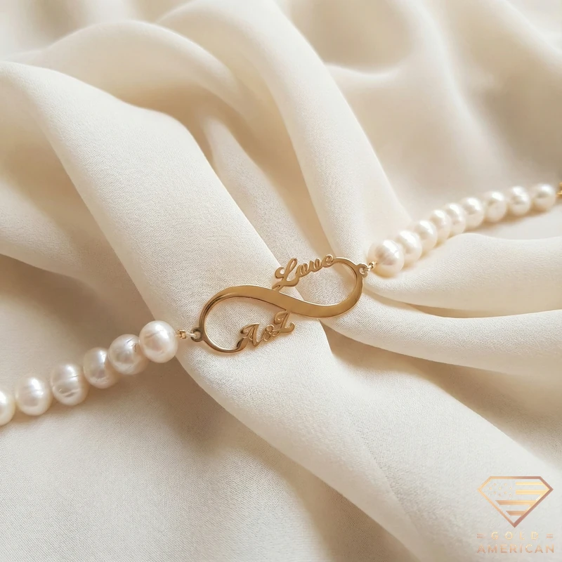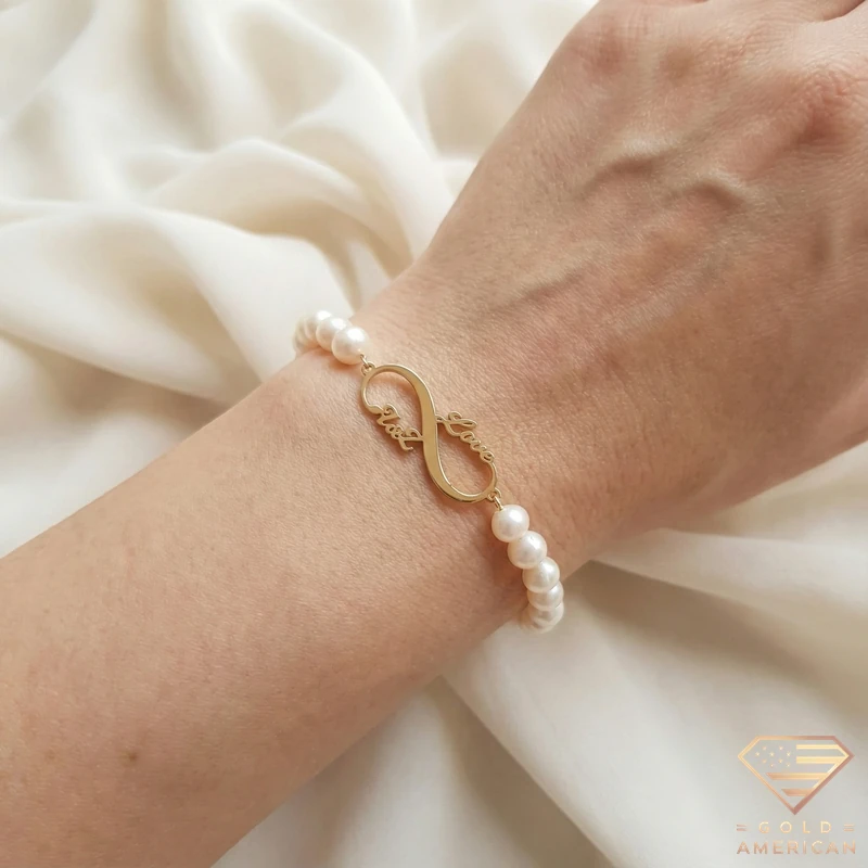 Lovely and sweet, Custom Gold Infinity Name Bracelet is a reminder of the love that never fades. Available online, this piece can be ordered with the accessories of your choice.