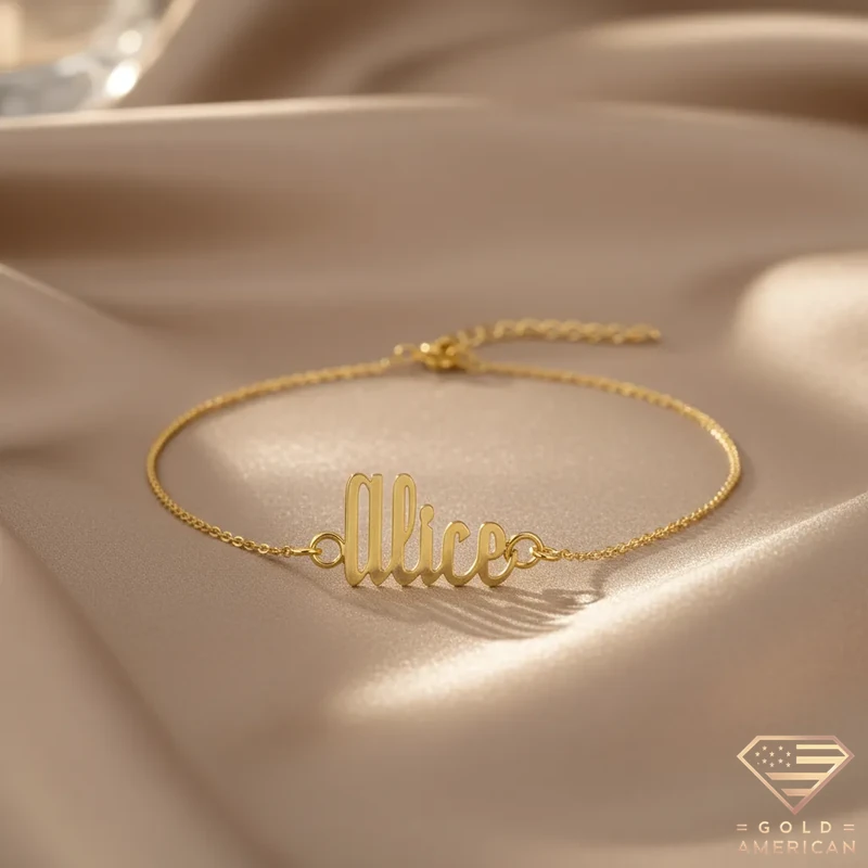 The customizable Retro Gold Name Bracelet, masterfully crafted to capture your uniqueness, embraces your wrist stylishly. Perfect for a gift, whether for yourself or someone you adore, this gold piece is available online.