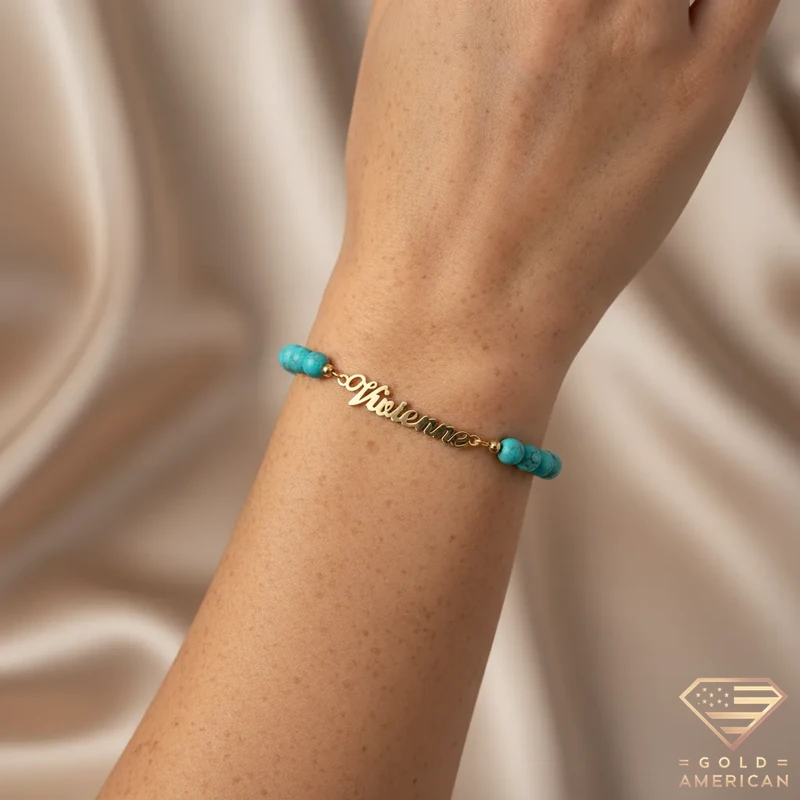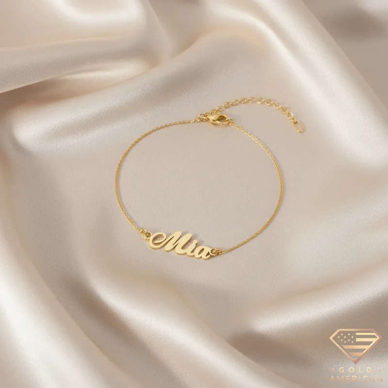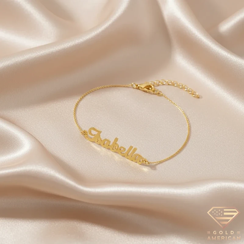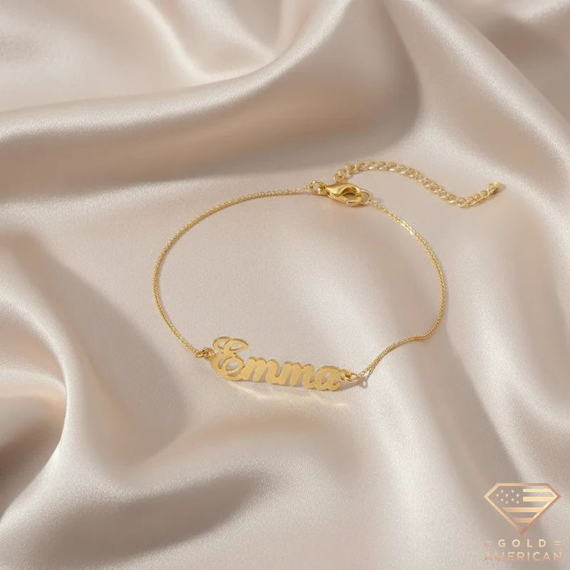 The Boston-made Graceful Gold Name Bracelet, crafted to say the name that you want, is an expression of identity. Elegantly sitting on the wrist, this gold piece can easily be purchased online.