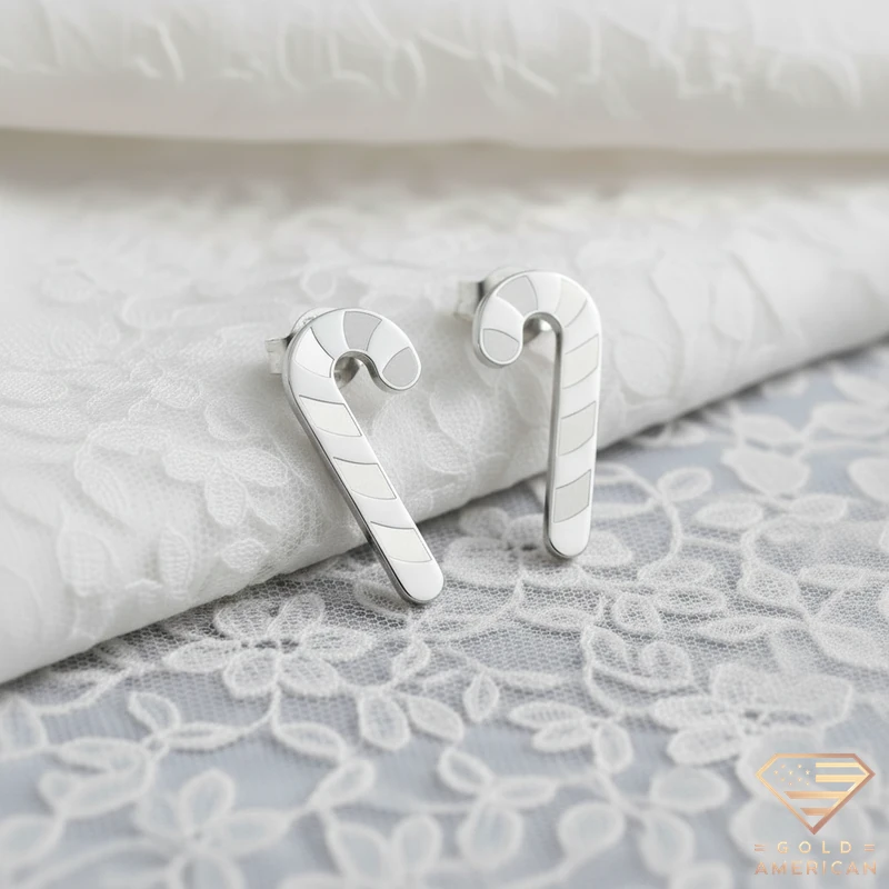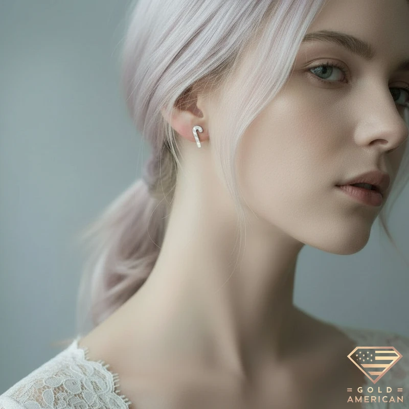 Candy Cane Gold Earrings are studs suitable for everyday wear as well as the festive holidays, available online.