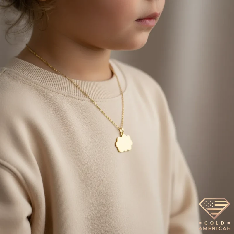 Cloud Gold Necklace is a soft and beautiful piece perfect for kids to have around and add to their everyday style in the material and color of your choice.