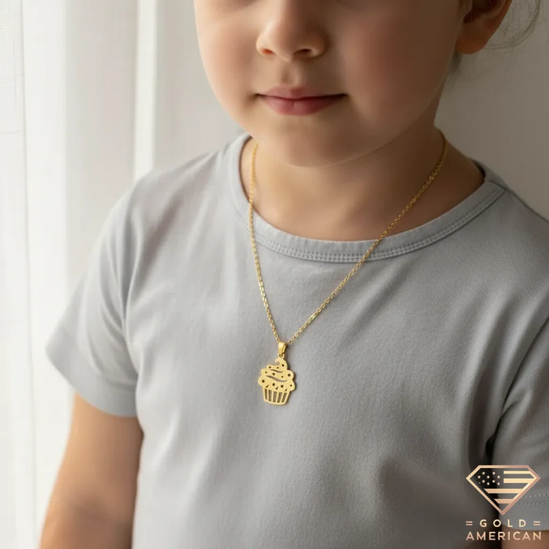 Cupcake Gold Necklace, with its delicate details, available in the material and color of your choice, is easily available online.