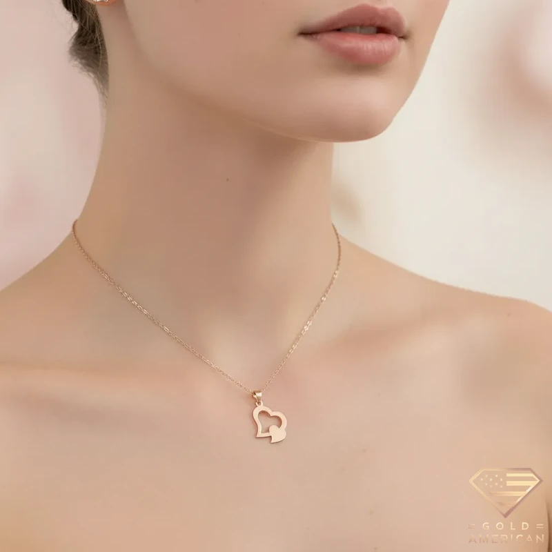 Double Heart Necklace is a customizable piece giving you the option of choosing the material and the color, as well as the chain or stone.