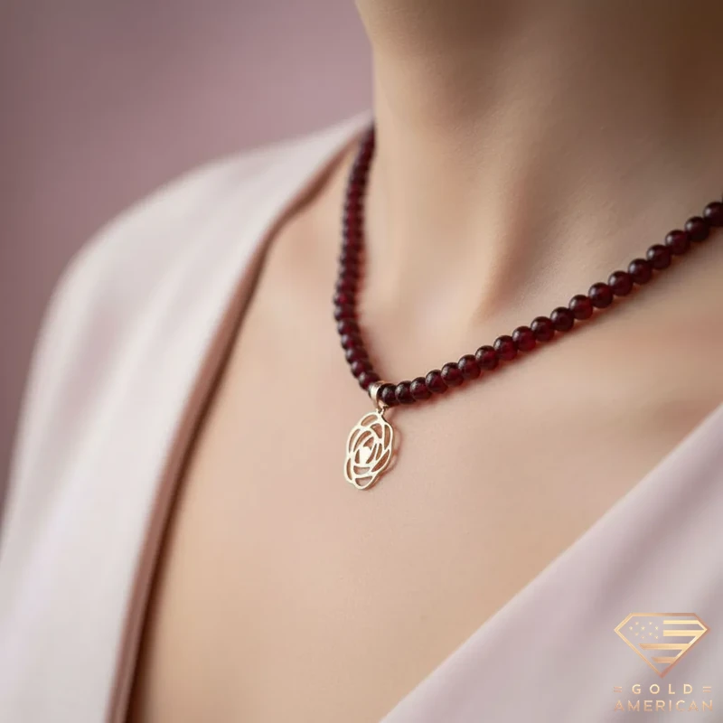 Sitting calmly on the collarbone, noticed inevitably, Gold Rose Necklace is a piece ready to be ordered in the material, color, and chain or gemstone of your choice,