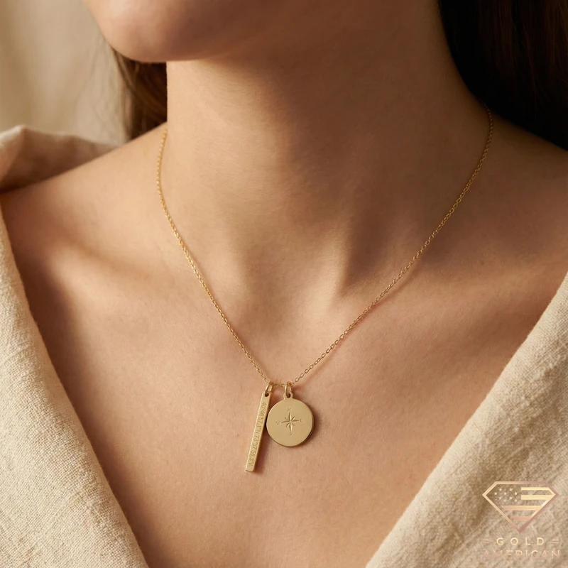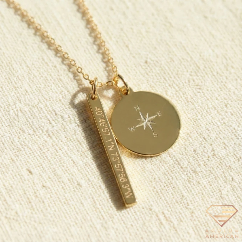 Engrave your special location on this handcrafted 14k gold bar and compass necklace. A personalized Valentine’s gift designed to keep your favorite memories close.