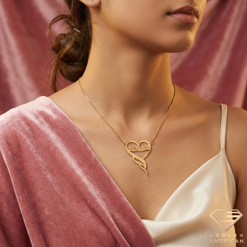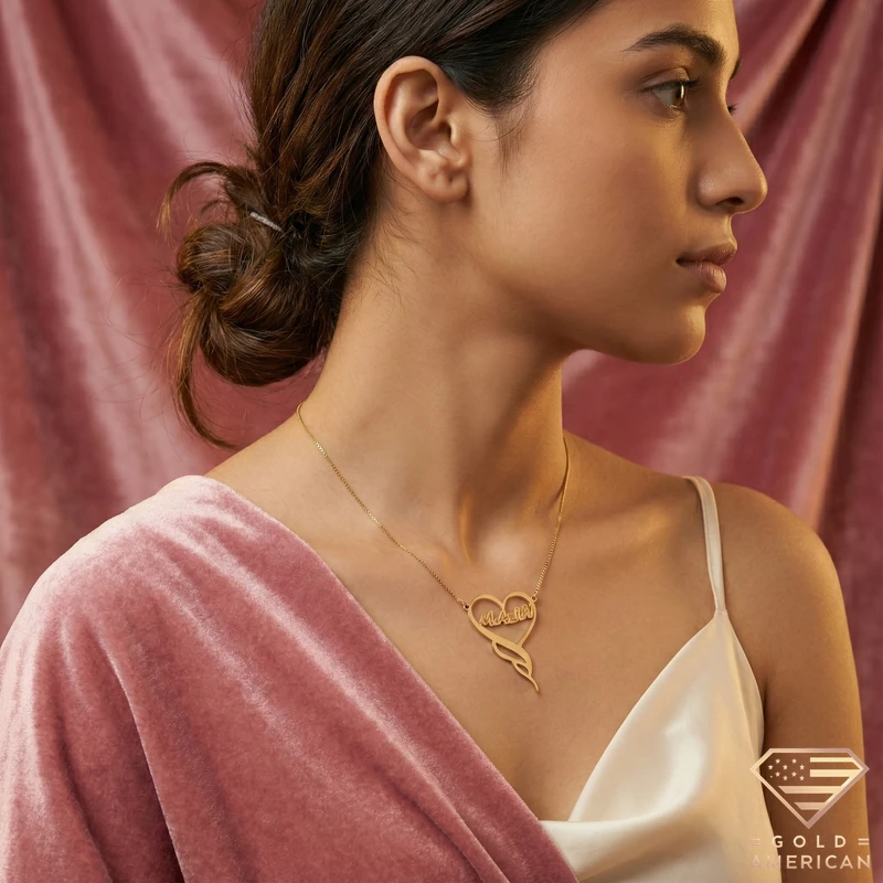 The fully-customizable Heart Name Necklace, romantic and elegant, is one of our gold name necklaces that has the name you want in a frame of gold. Hand-crafted to state your name delicately, this piece is perfect for a gift to yourself or your loved-one.