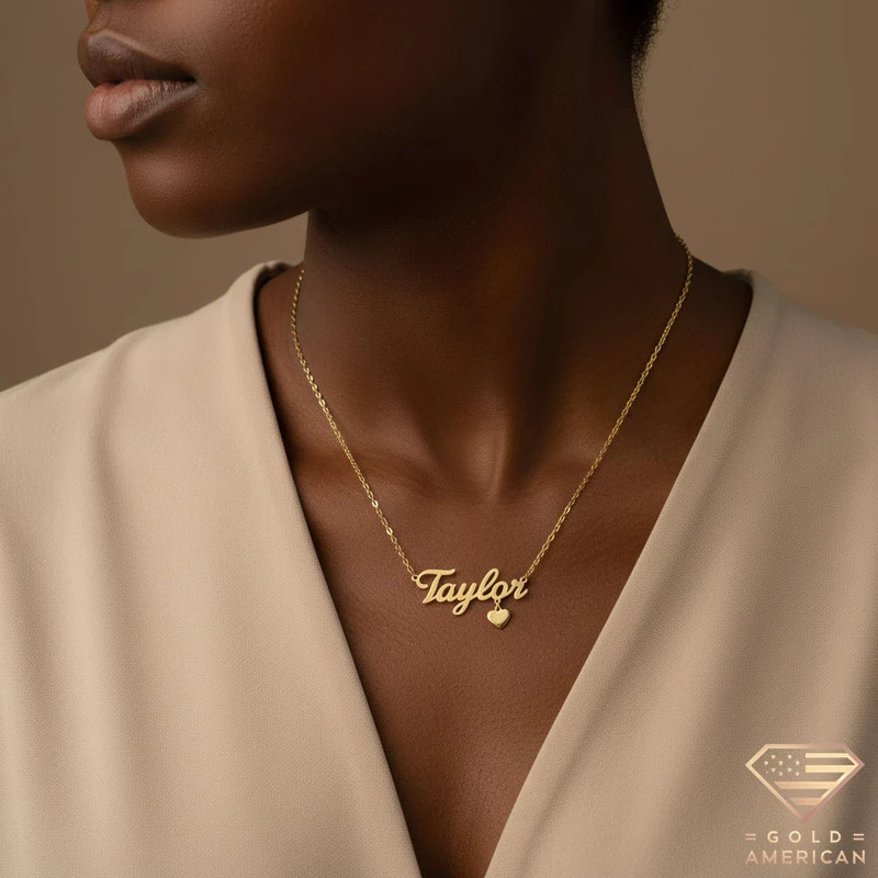 Elegant and luxurious, Name Necklace with a Heart Charm is one of our customizable Gold Name Necklaces allowing you to choose not only the name, but also the font for it.