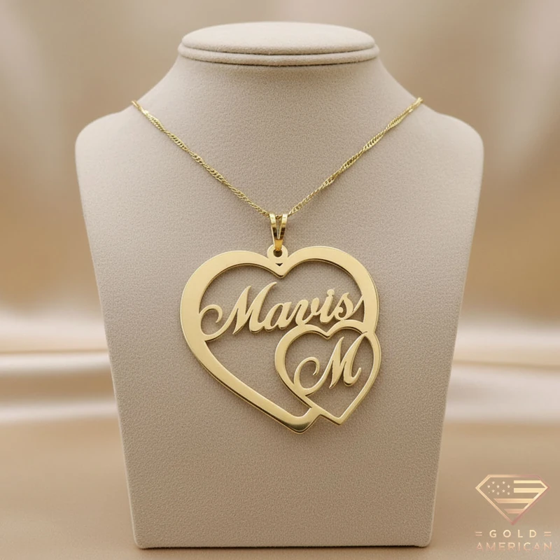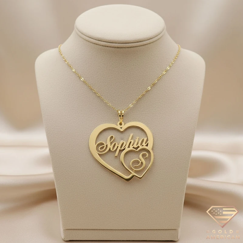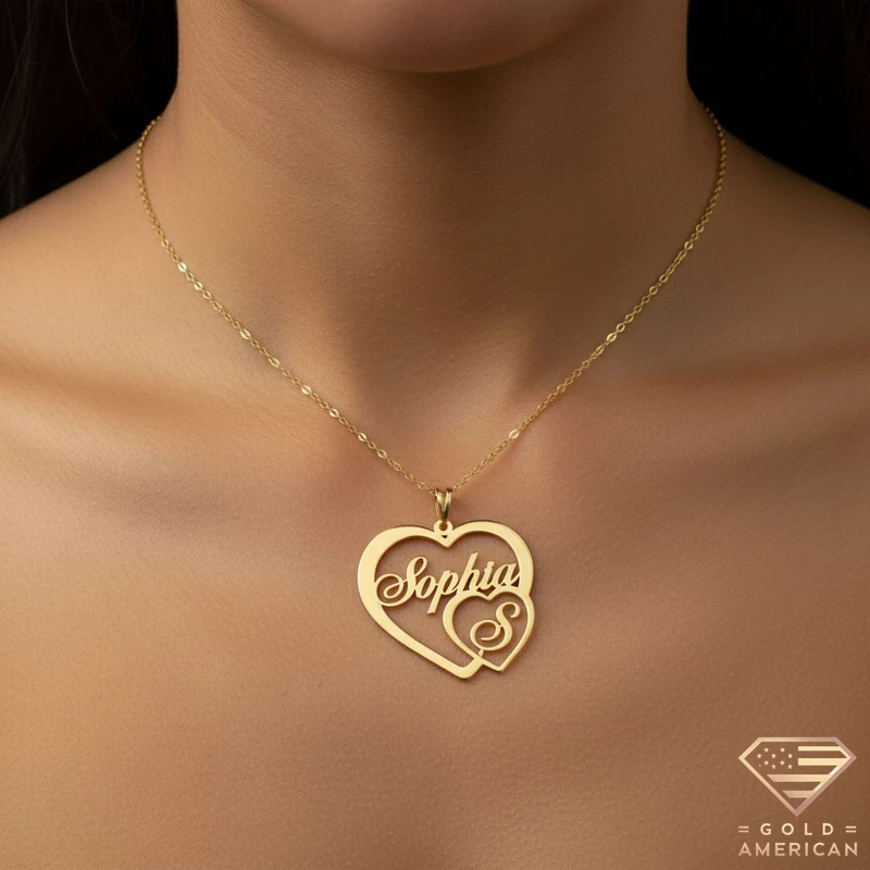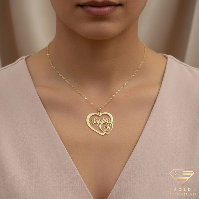Elegant and meaningful, Heart Name and Initial Necklace is one of our gold name necklaces that gives you the option of having a name and an initial beside each other. Available online, this customizable piece can be ordered in any of the 12 fonts provided.