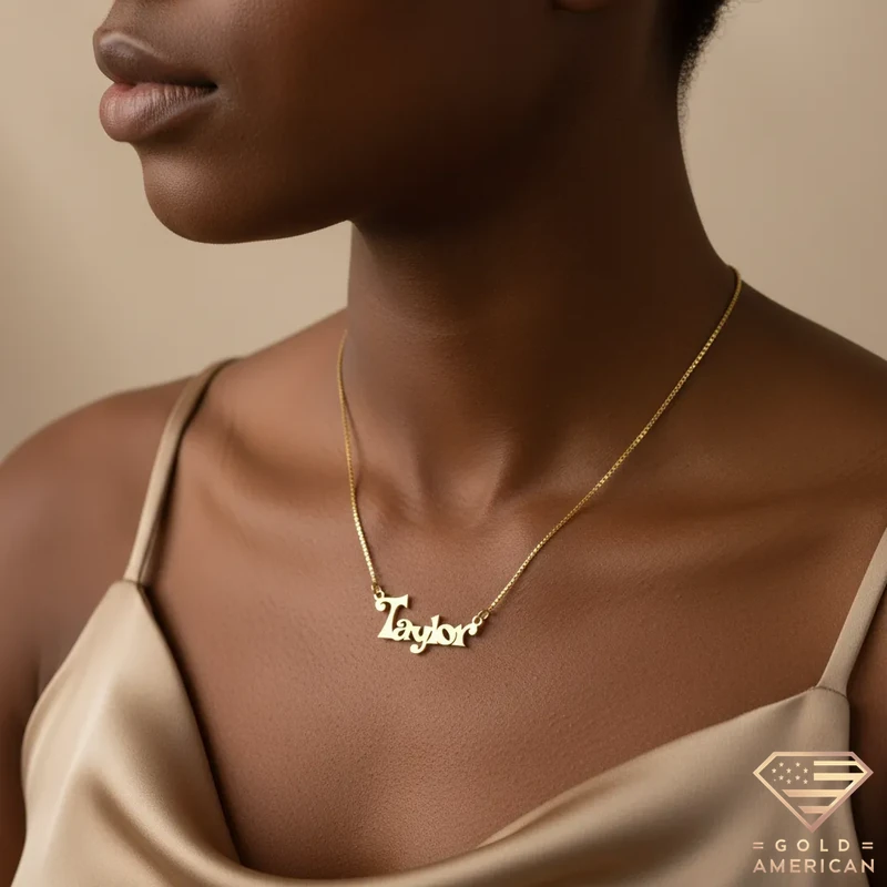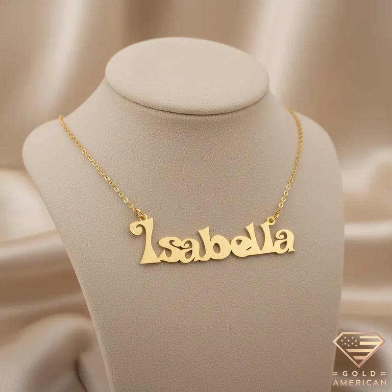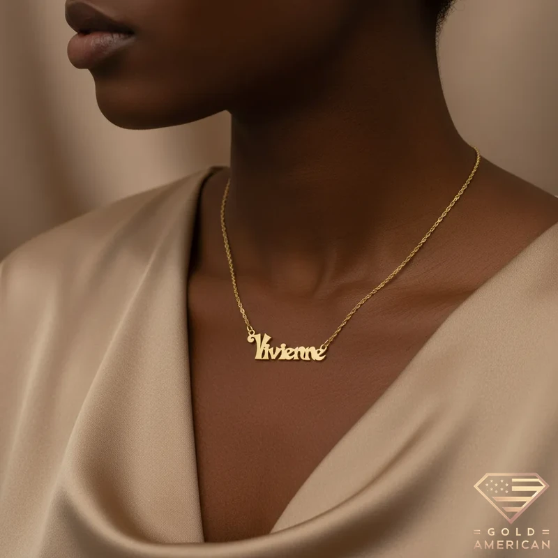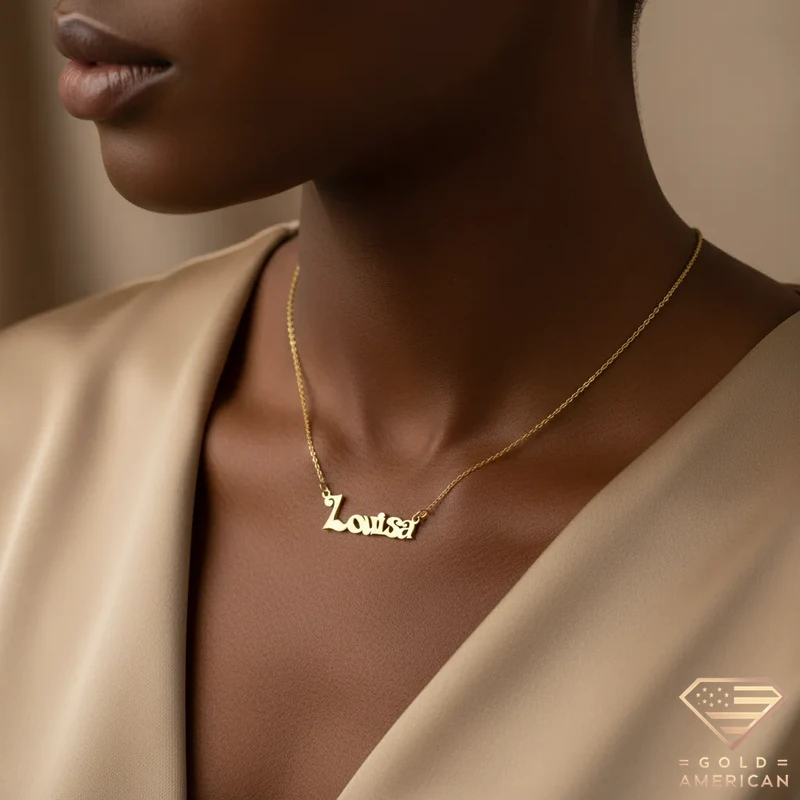 Enchanting Gold Name Pendant dramatically whispers of the personal style. Perfect for a gift to yourself or your loved ones, this customizable necklace is available online to elevate the look.