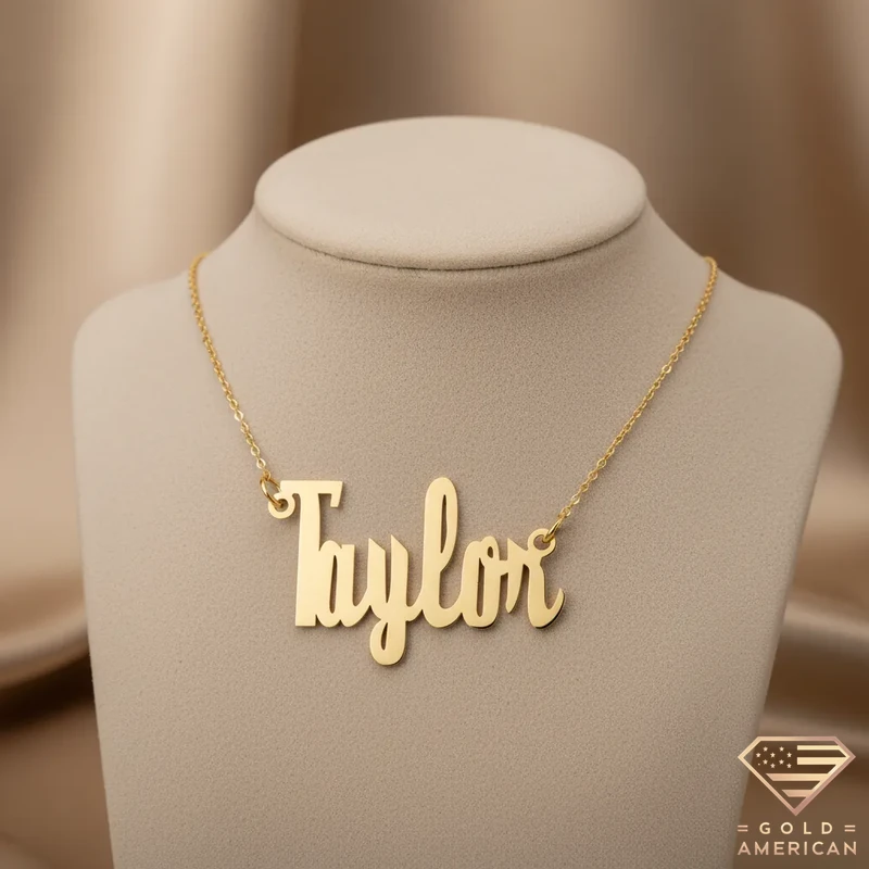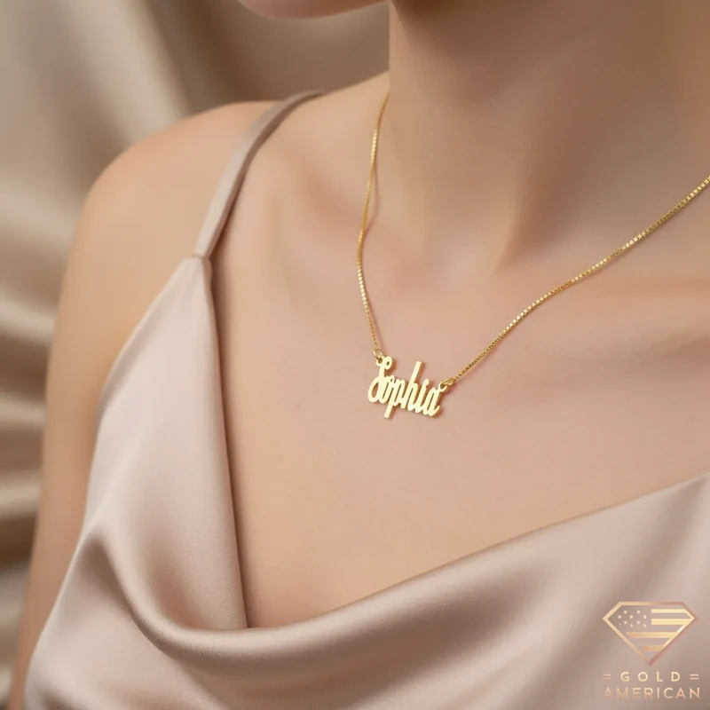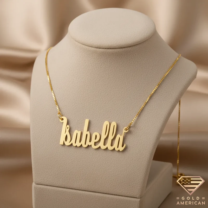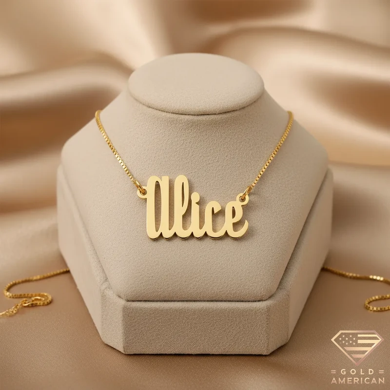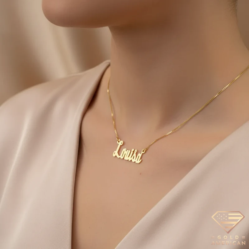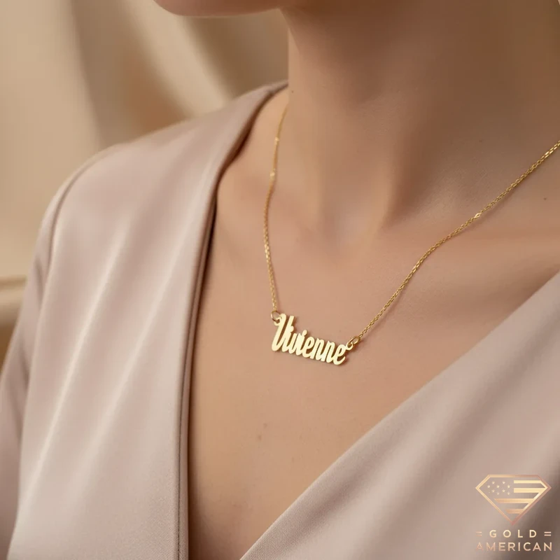 The customizable Retro Gold Name Pendant, masterfully crafted to capture your uniqueness, embraces your neck stylishly. Perfect for a gift, whether for yourself or someone you adore, this gold piece is available online.