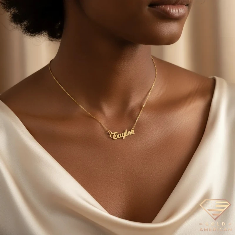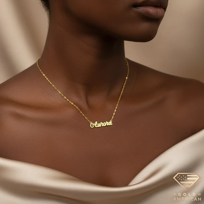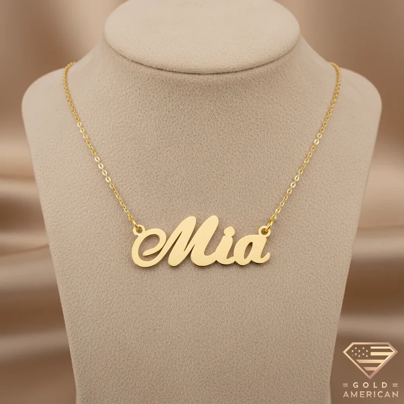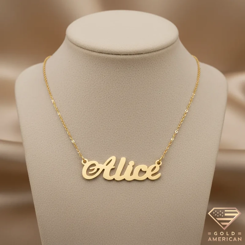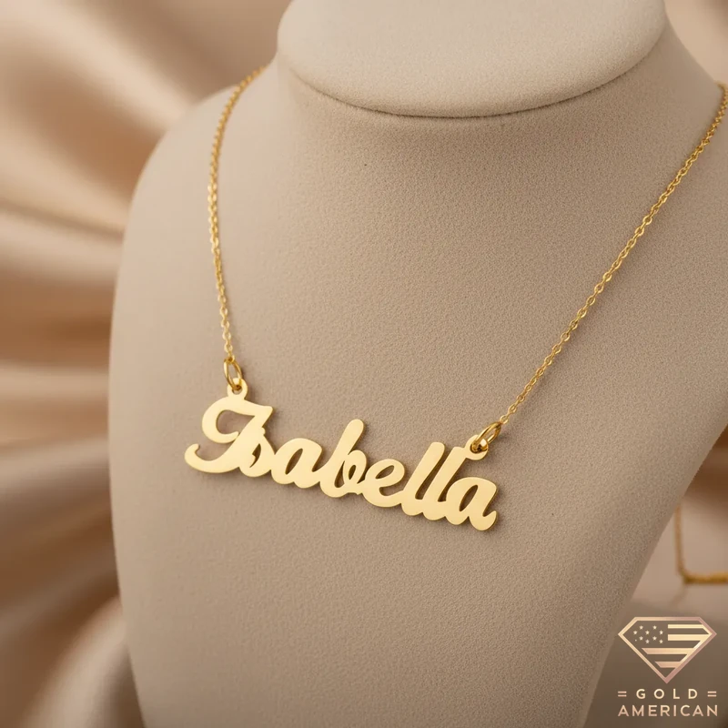 The Boston-made Graceful Gold Name Necklace, crafted to say the name that you want, is an expression of identity. Elegantly sitting on the collarbone, this gold piece can easily be purchased online.