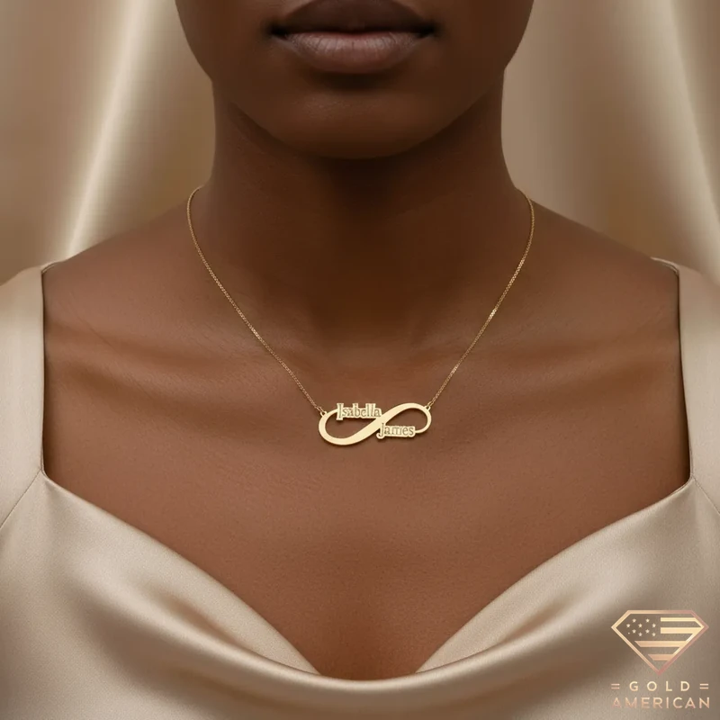 The everlasting Infinity Name Necklace Gold is here to show your never-ending bond. Affectionately shining with the two names of your desire, this customizable gold piece elevates your look with love.