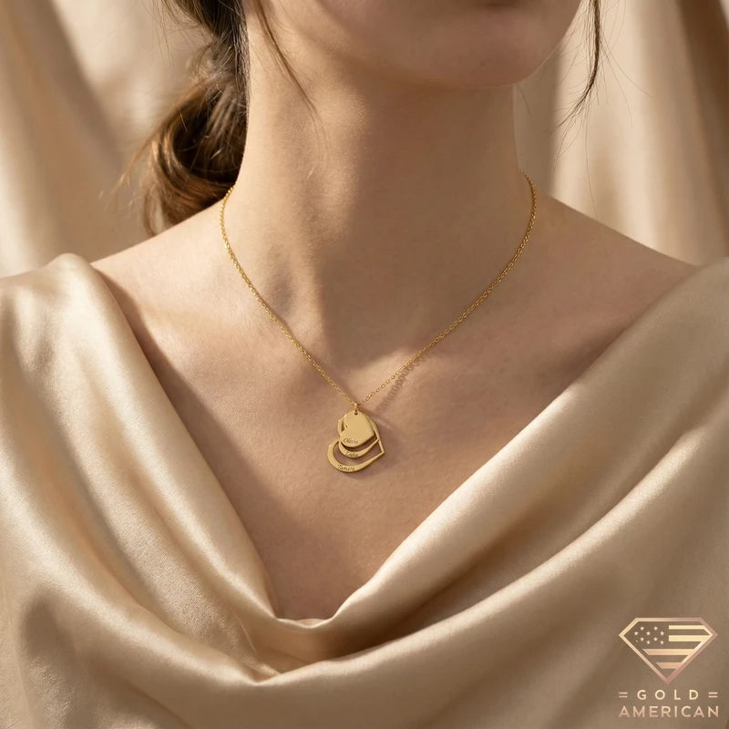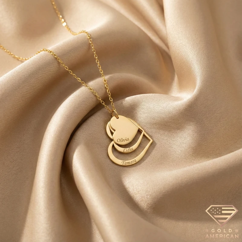 Exquisitely crafted with a warm gold finish, this nested heart pendant features precision engraving. A sophisticated, personal gift for the names you cherish most.