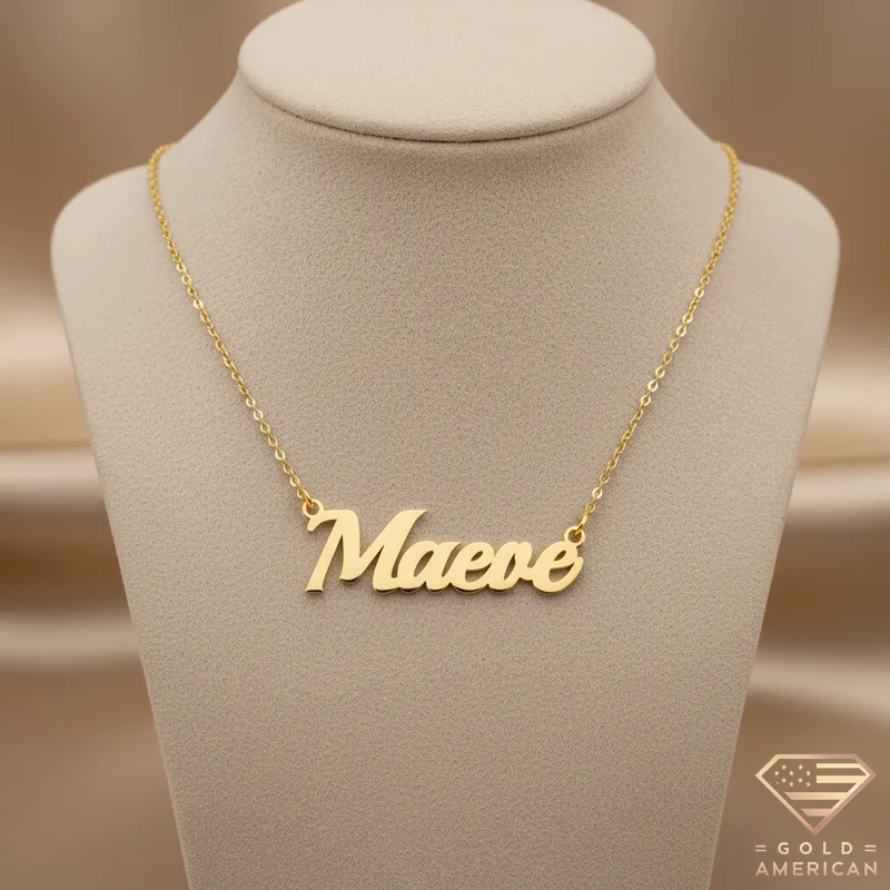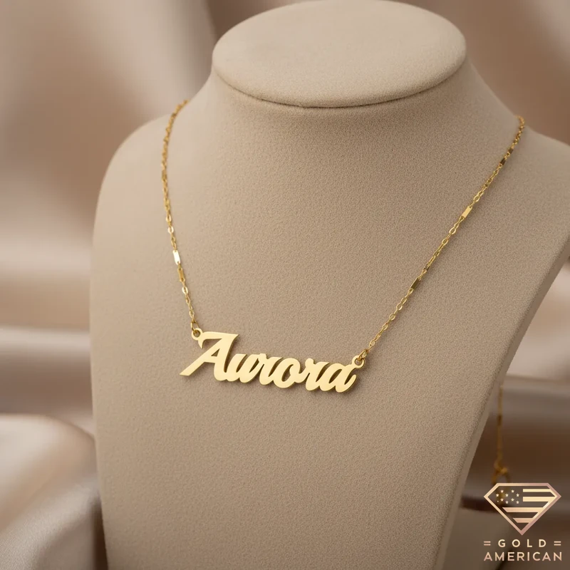 Radiant and stunning, Regal Gold Name Necklace rests powerfully on the collarbone, commanding recognition elegantly. Boldly sharing your identity or your loved-one’s, this Boston-made piece is a custom-made keepsake ready to be ordered online.