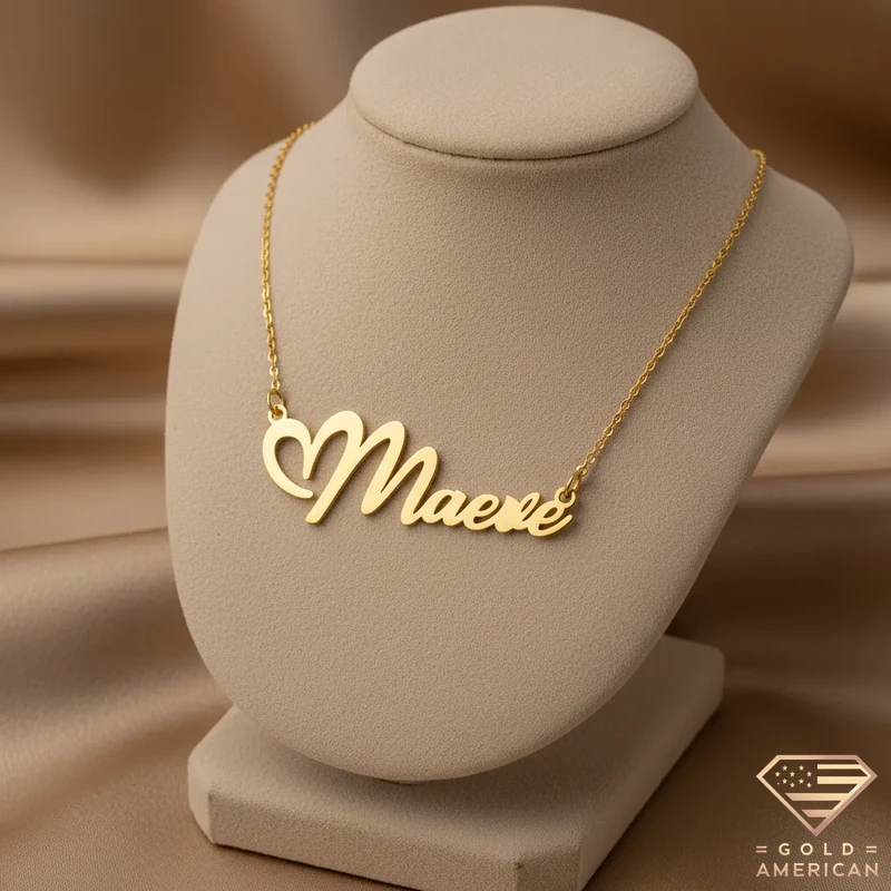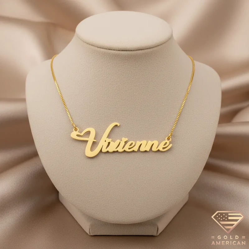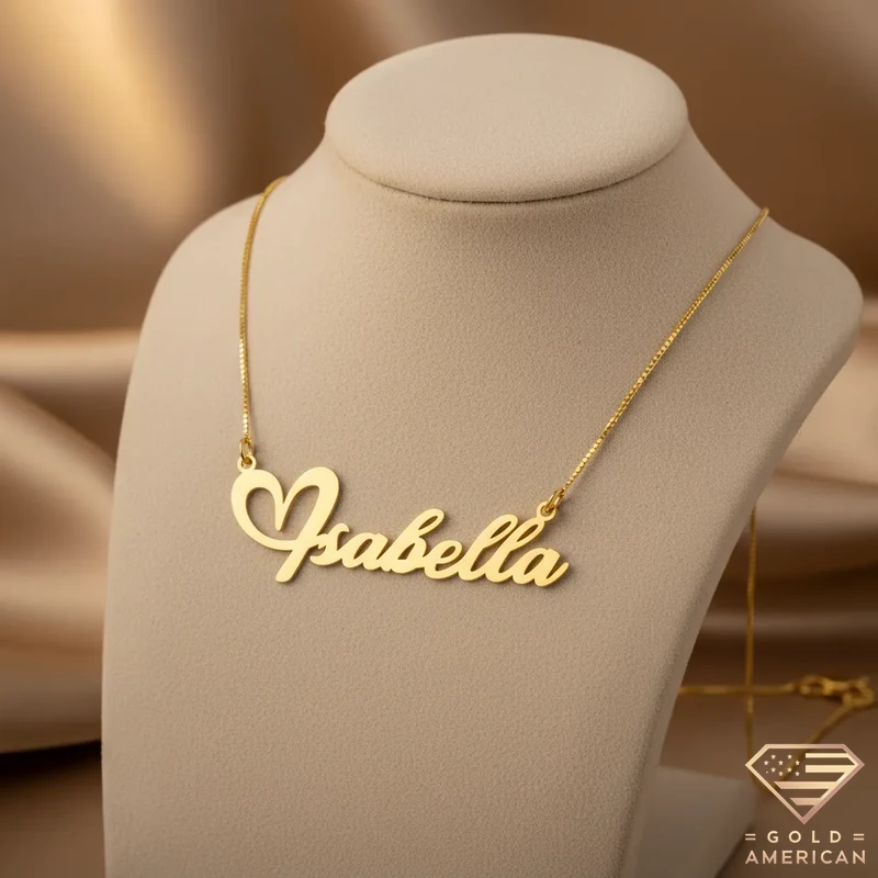 Heartfelt and elegant, Romantic Gold Name Pendant is a Boston-made token of love ready to be ordered. Radiating lovingly, this customizable gold piece is an intimate keepsake to remember.