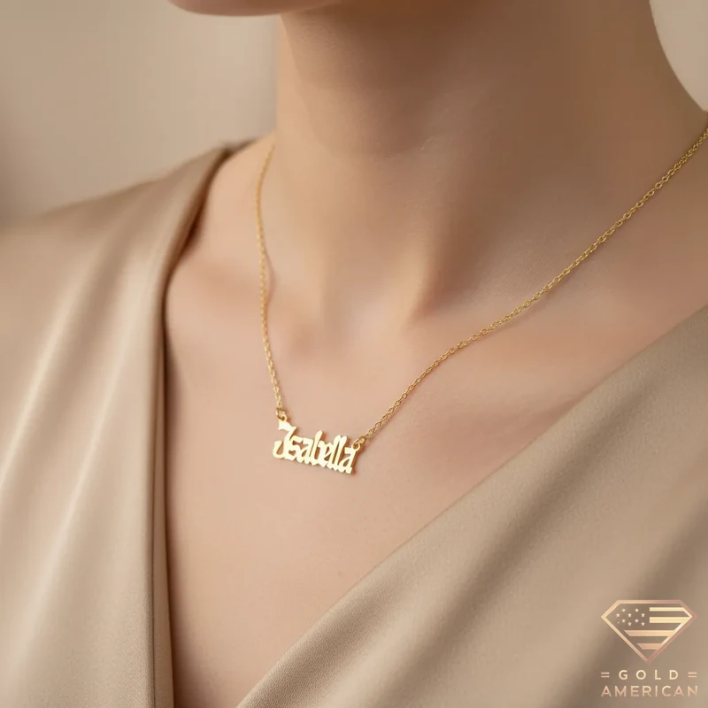 The customizable Stylish Gold Name Pendant iconically captures the significance of the name. Whether as a gift or remembrance, this timeless piece shines elegantly in gold.