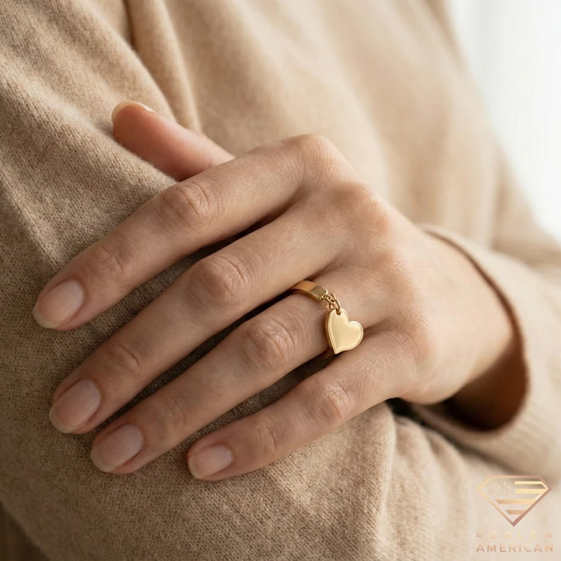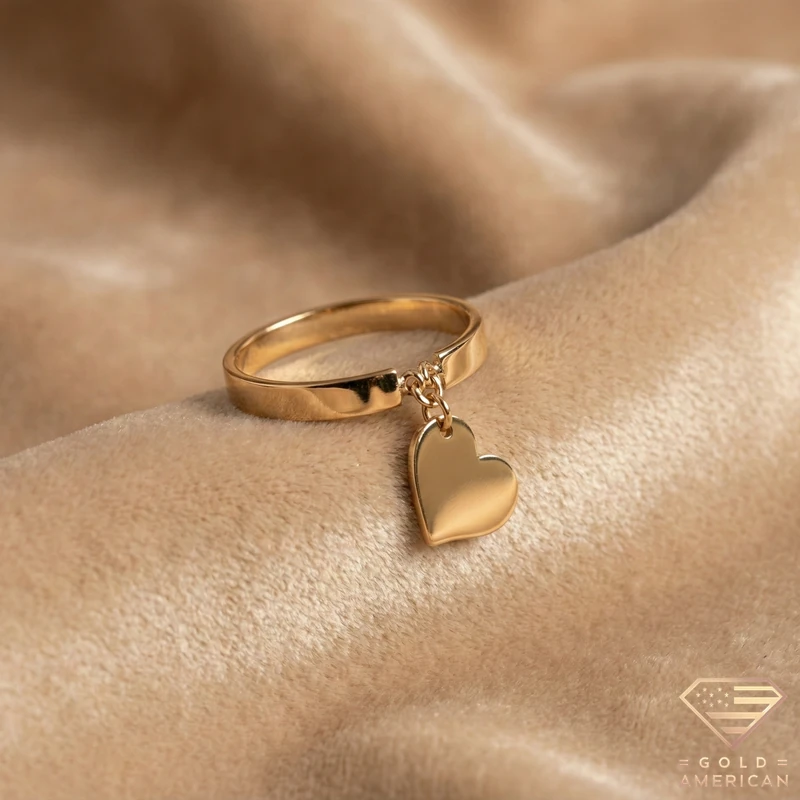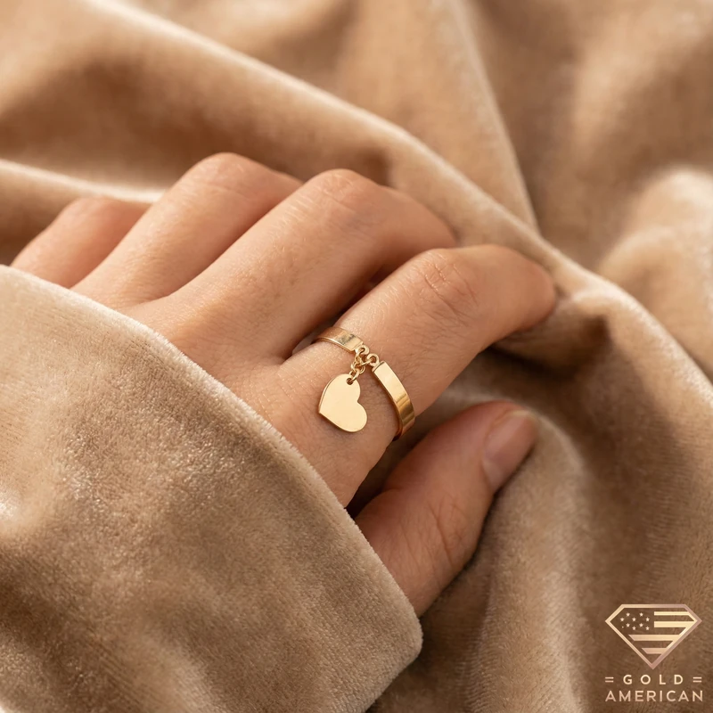 Customizable to be made in the material and color of your choice, Heart Charm Gold Ring radiates elegantly on the finger, easily available online.
