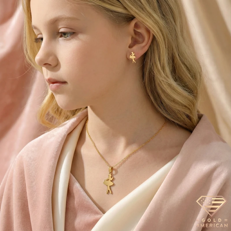 Expertly crafted in solid 14k yellow gold, this ballerina set includes a dainty pendant and matching earrings. A timeless, high-quality gift for special moments.