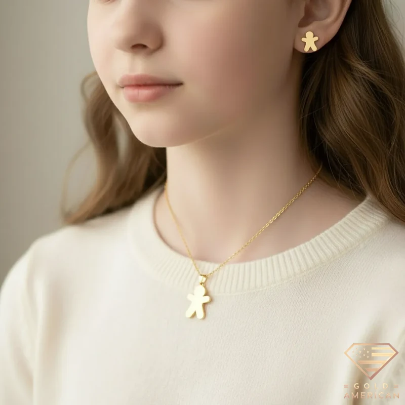 Gingerbread Man Gold Set, perfect for a gift to yourself or someone you love, is a sweet piece bringing a smile on anyone’s face, perfect for the holidays.