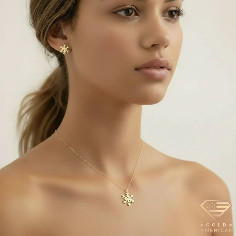 Snowflake Gold Set is a set available in different materials, colors, and chains or stones for you to purchase online.